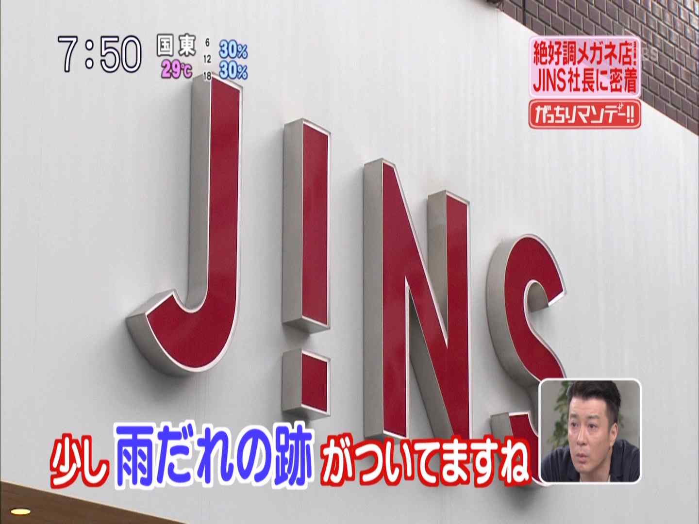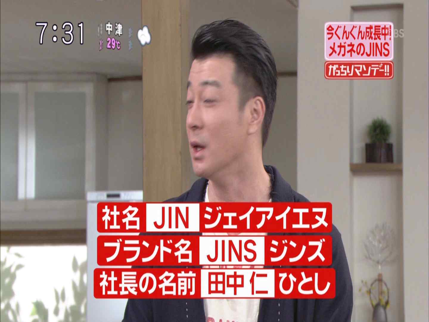 社名 JIN ジェイアイエヌ。ブランド名 JINS ジンズ。社長の名前 田中 仁 ひとし。